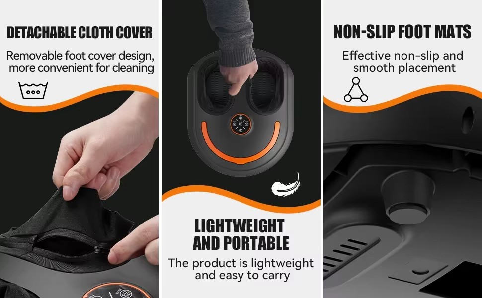 Comfortable design: The internal design conforms to the curve of the foot, wrapping the feet in all directions to ensure precise care for every part during massage, enhancing massage comfort, and allowing you to enjoy professional foot massage at home. Whether it's office workers who have been standing for a long time, sports enthusiasts, or middle-aged and elderly people, they can all comfortable from foot massagers
