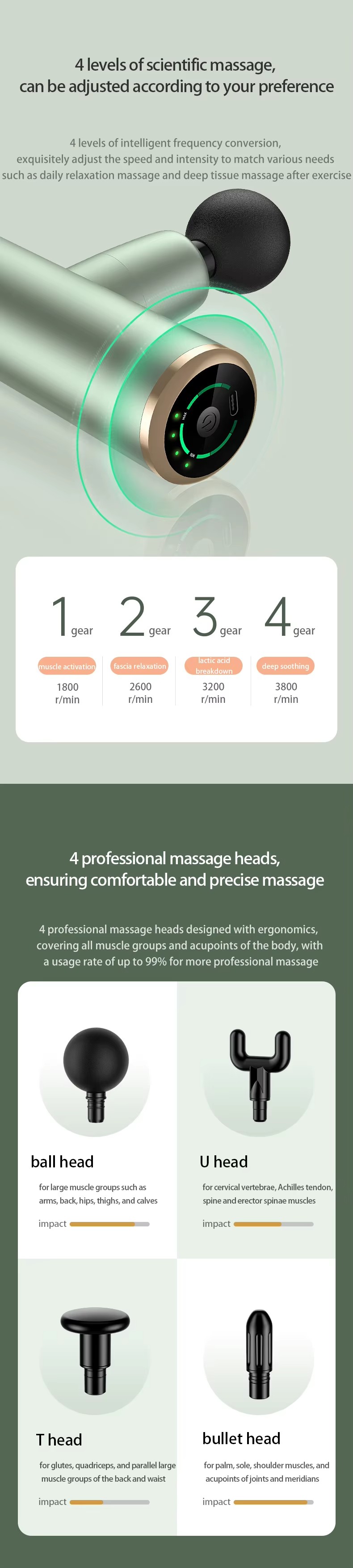 Items included | Massage gun/4 heads/type-c cable/User manual |