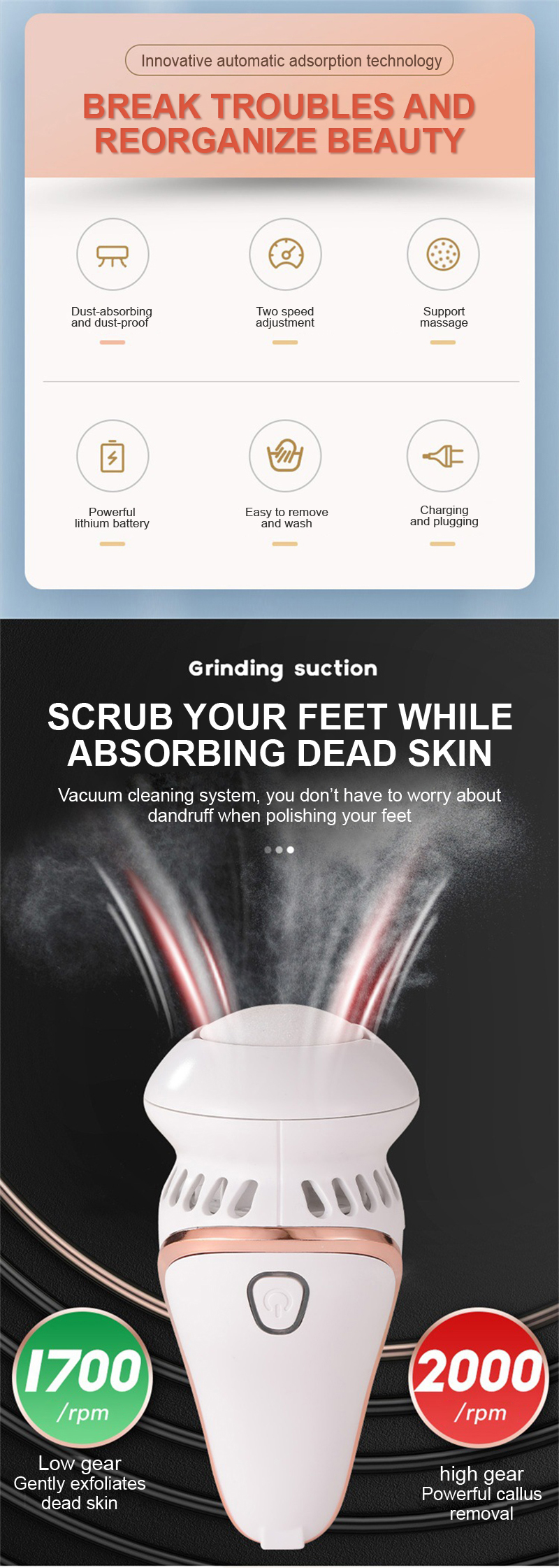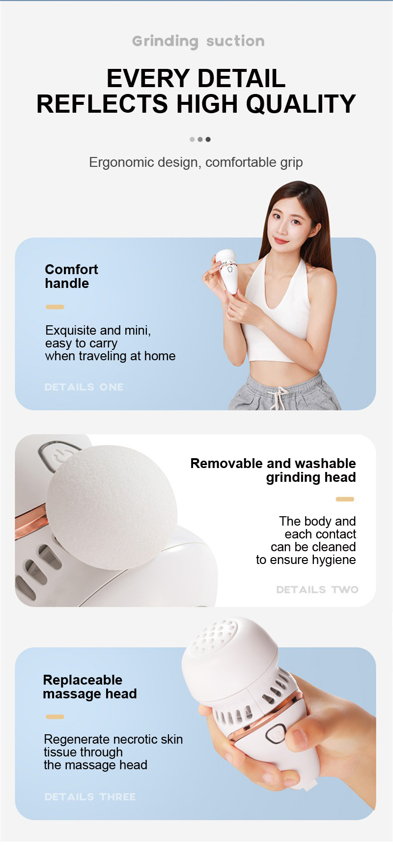 Replaceable heads | 2*foot grinding 1*Massage