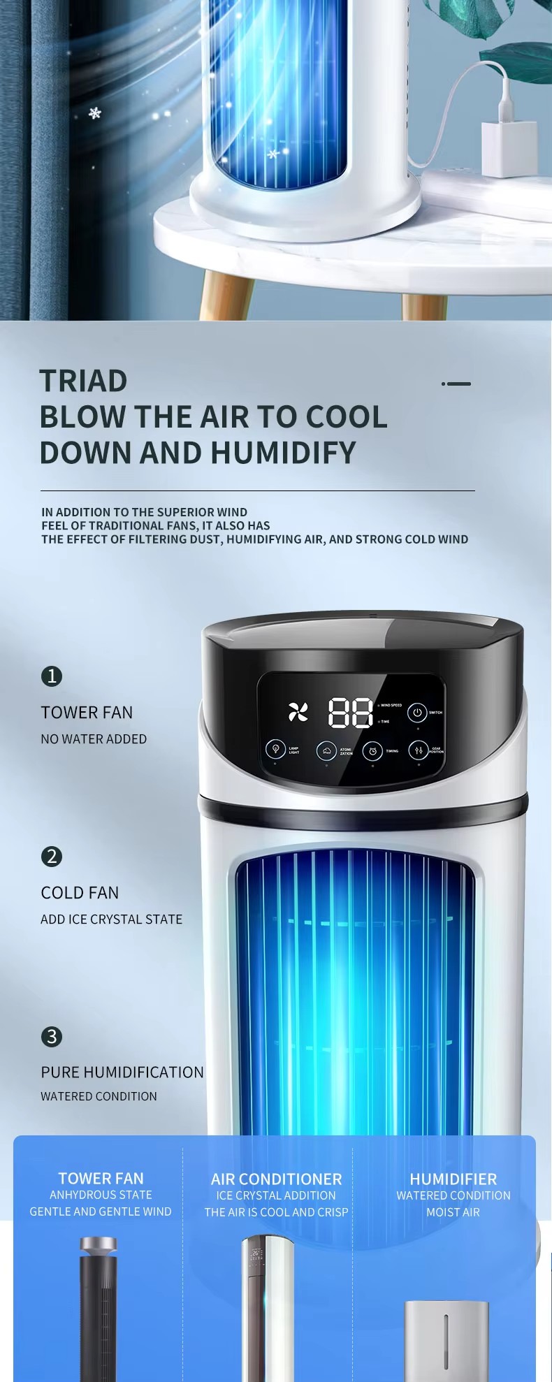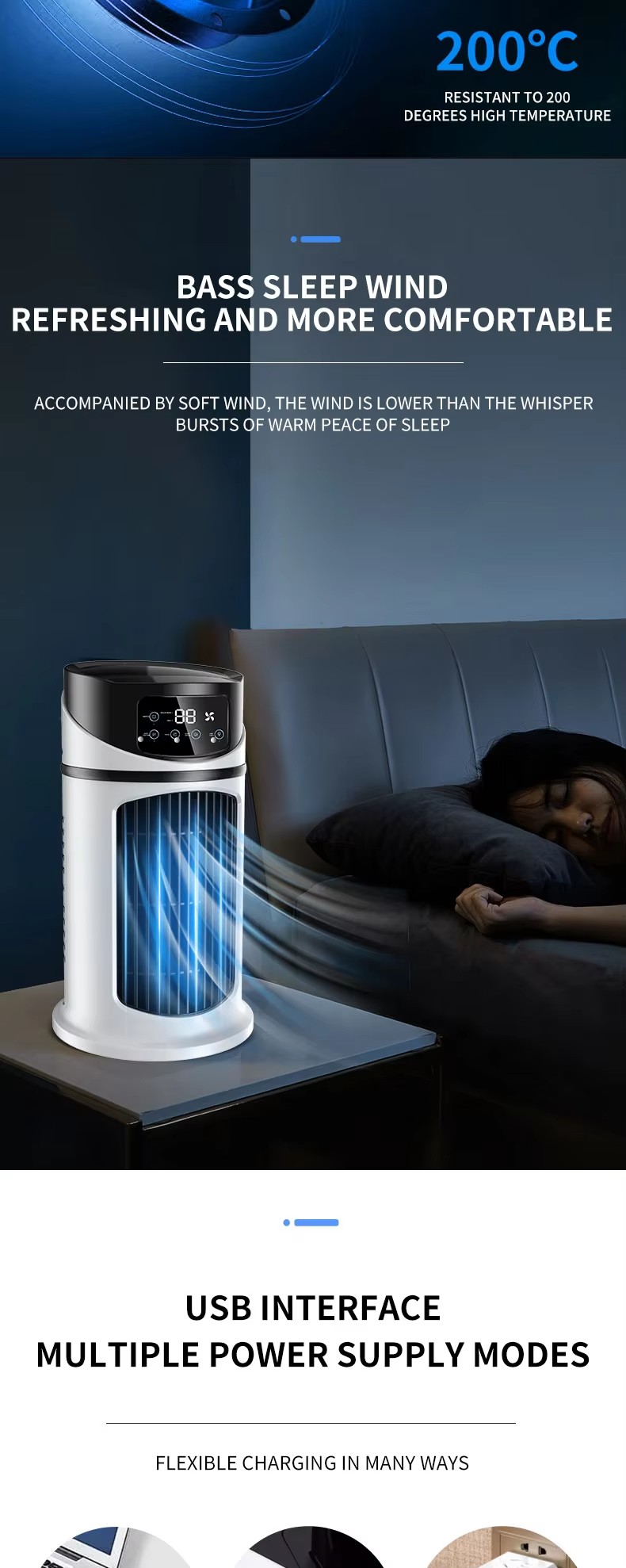 feature | Bladeless Fan, Energy saving, shaking head, Air Purifier, LOW NOISE |